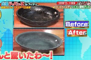 フィジーの大家族が使用しているフライパンの30年分の焦げを落とす便利グッズとして紹介されています。