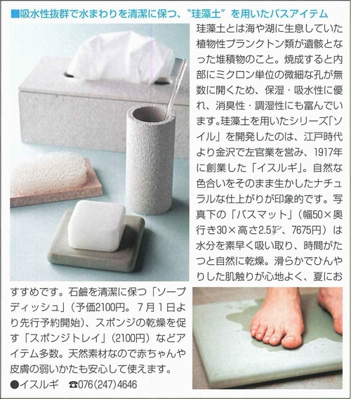 soil が “家庭画報” に 掲載されました。 2011年6月1日 世界文化社 が 発行している “家庭画報” 7月号 の 特集 「これは面白い!」 と 感じた情報を 厳選して紹介する エディターズレポート に soil が 掲載されました。