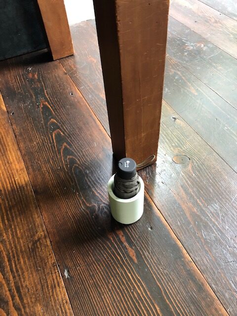 会社、オフィスで折り畳み傘の置き場所に困っていませんか? 傘をデスクの足元に置いて、床が濡れてしまったりした事はありませんか? 沢山の傘がささっている、オフィスエントランスの大規模な傘立てに折り畳み傘を入れると、大きな傘