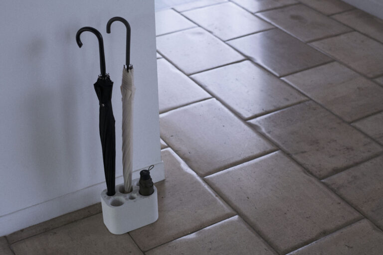 これは、既に販売しているアンブレラスタンドの穴を6穴に増やし、今までの3穴では少し足りないという、数本の傘をお持ちのファミリーの方からのご要望にお応えしました。また、折り畳み傘は、傘立てに入れ難くかったり、傘立てが深すぎ