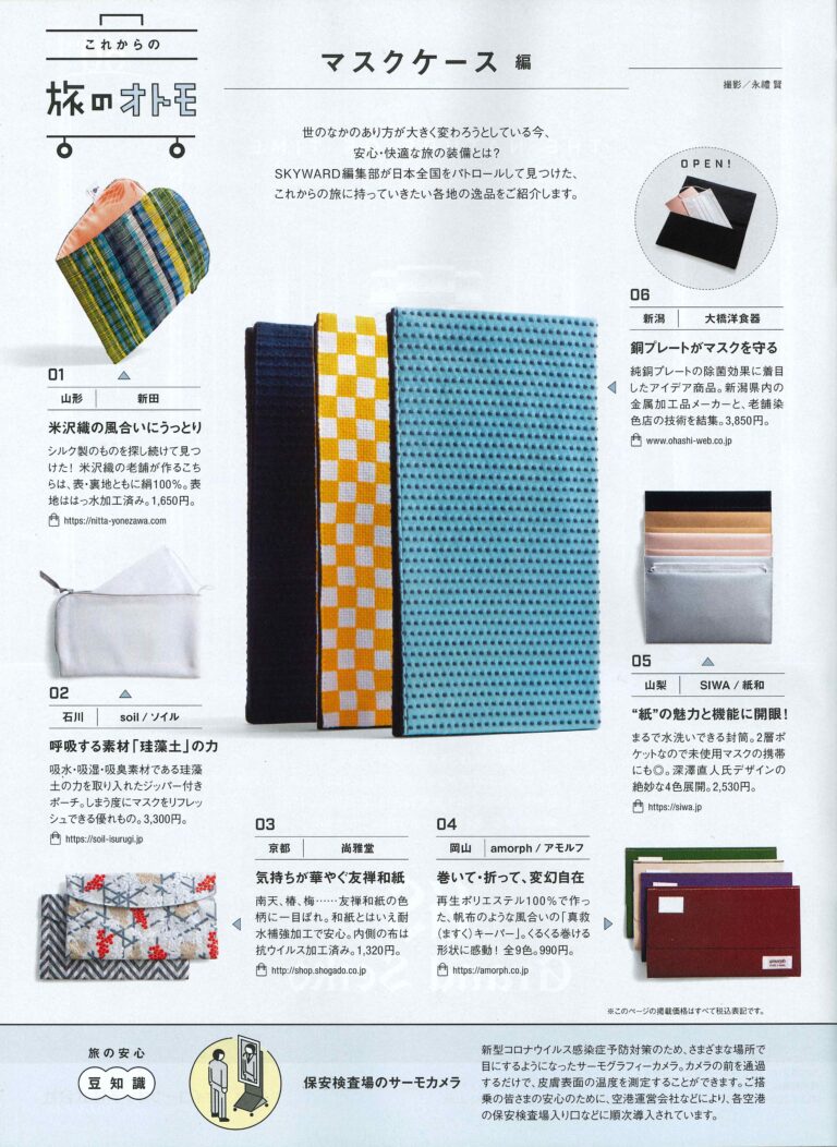 JALの機内誌、「SKYWARD」の“これからの旅のオトモ マスクケース編”で、soil マスクケースが紹介されました!
